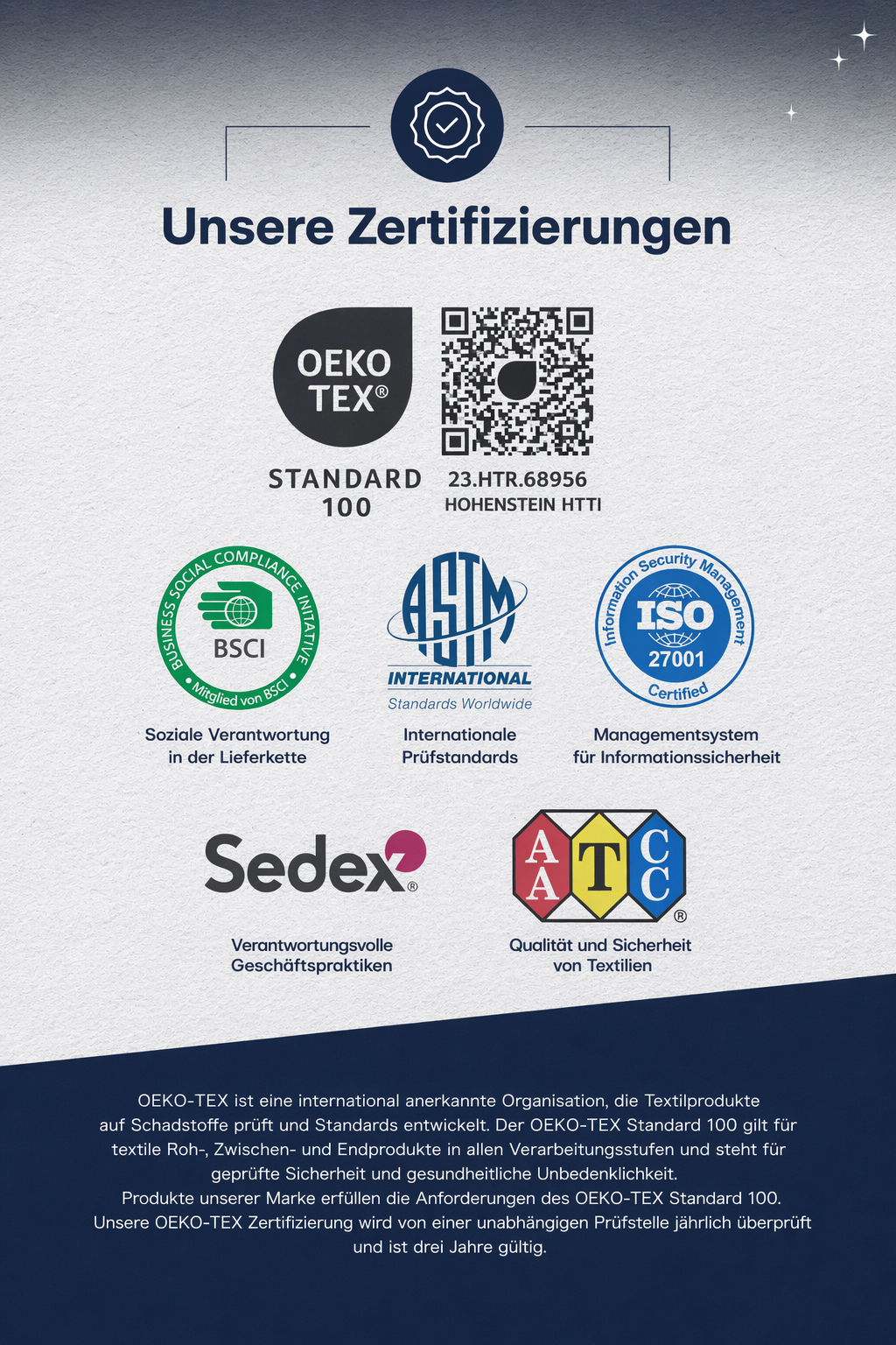 Diese Materialkombination bietet Komfort, Haltbarkeit und einfache Pflege — ideal für den täglichen Gebrauch.