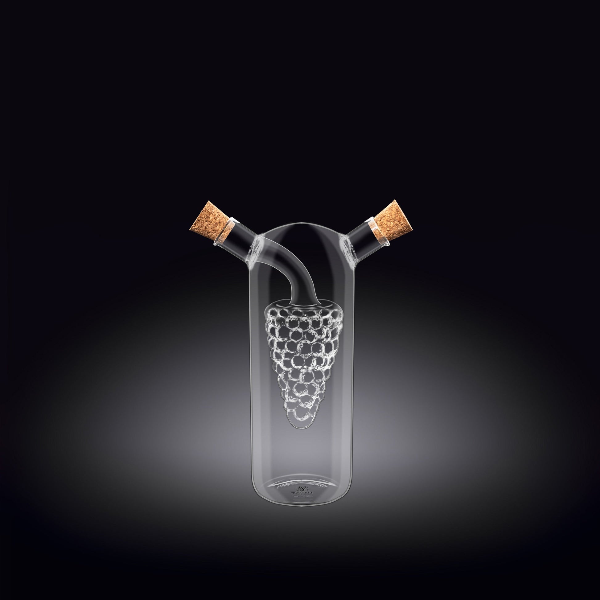 Die Wilmax Öl-/Essigflasche ist die ideale Lösung für eine elegante Tischpräsentation. Mit einem Fassungsvermögen von 250 ml für Öl und einem kleineren, inneren Behälter mit 50 ml für Essig, bietet sie Funktionalität und Stil in einem.